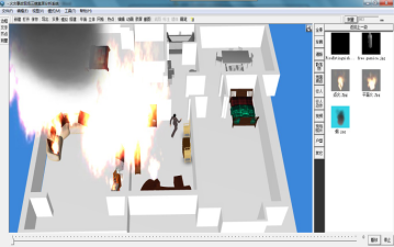 火災(zāi)現(xiàn)場(chǎng)模擬復(fù)原分析系統(tǒng)可以將虛擬的人物、車輛、火焰和煙霧等模型添加到真實(shí)的火災(zāi)事故現(xiàn)場(chǎng)全景圖中,并且可以對(duì)三維的人物、車輛、火焰和煙霧等進(jìn)行模擬動(dòng)畫的創(chuàng)建,使真實(shí)的火災(zāi)現(xiàn)場(chǎng)圖像有更大的參考價(jià)值,結(jié)合真實(shí)的火災(zāi)現(xiàn)場(chǎng)圖像能更加準(zhǔn)確的分析火災(zāi)成因以及復(fù)原火災(zāi)過(guò)程。
