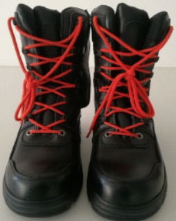 由靴外底、靴跟、帶舒適層的靴幫、帶防穿刺層的靴內(nèi)底、鞋墊和靴頭等組成。主體為黑色;反光標(biāo)志為熒光黃色;鞋帶和“消防救援”標(biāo)志為橘紅色;內(nèi)懷設(shè)有快速穿脫功能拉鏈,靴面主體材料為黑色防水阻燃頭層黃牛鞋面革和防水阻燃帆布,靴底為雙密度氯丁合成橡膠,一體成型;由外底、帶舒適層的靴幫、帶防刺穿層的內(nèi)底和保護(hù)靴頭等部分組成的系帶式中筒靴;靴內(nèi)底防刺穿層應(yīng)覆蓋整個(gè)靴內(nèi)底,不應(yīng)位于保護(hù)包頭卷邊上方,不應(yīng)與之接觸,在不損壞整靴的情況下應(yīng)不能被移動(dòng);靴頭保護(hù)包頭深度從靴尖量起5 0mm。靴鼻處應(yīng)能限制雜物進(jìn)入靴內(nèi);靴幫抗穿刺性能:1 2 0N,內(nèi)腳踝處設(shè)有護(hù)踝片;具備防刺、防滑、耐熱、防砸等性能,穿著應(yīng)舒適,不磨腳;靴身配