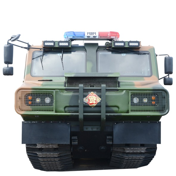 水中行駛方式:車尾部配備螺旋式水下推進(jìn)裝置,在水中可自由切換,使用螺旋式推進(jìn)裝置或履帶兩種模式行駛